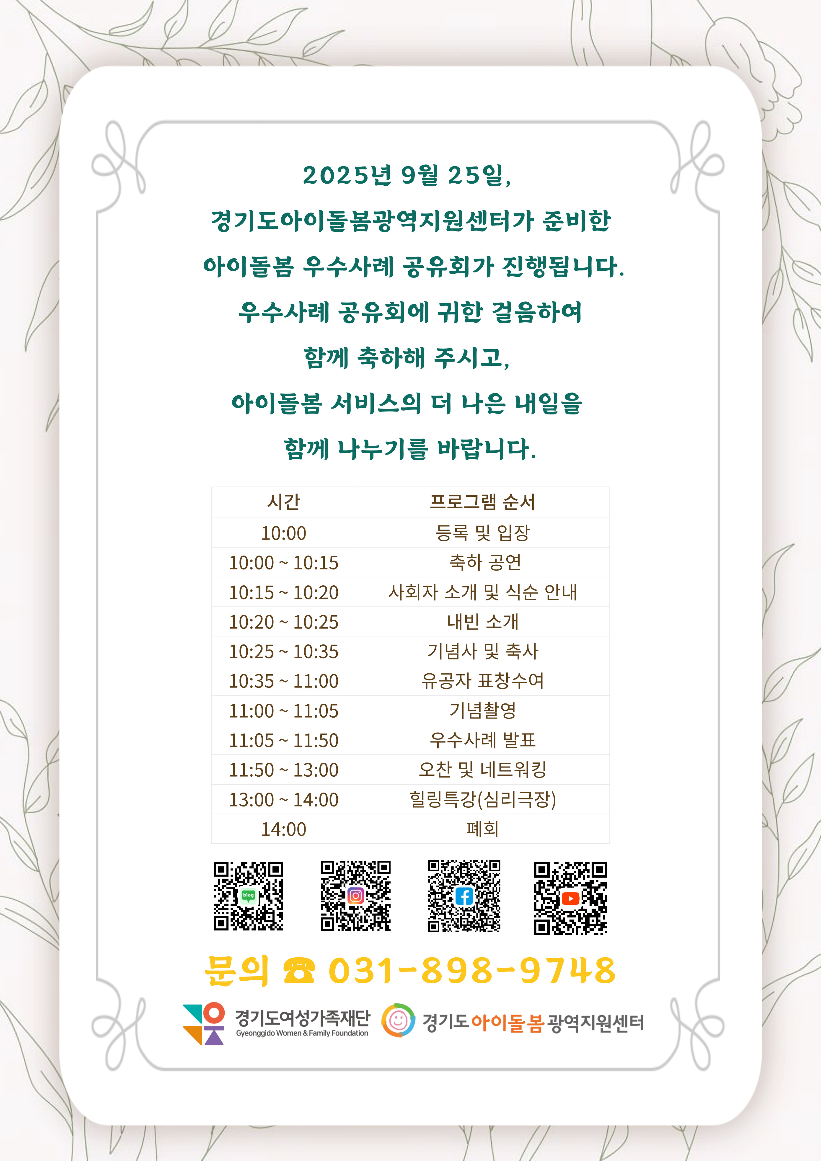 함께 나누고자 2025년 9월 25일, 경기도 아이돌봄 우수 사례 공유회를 개최합니다.