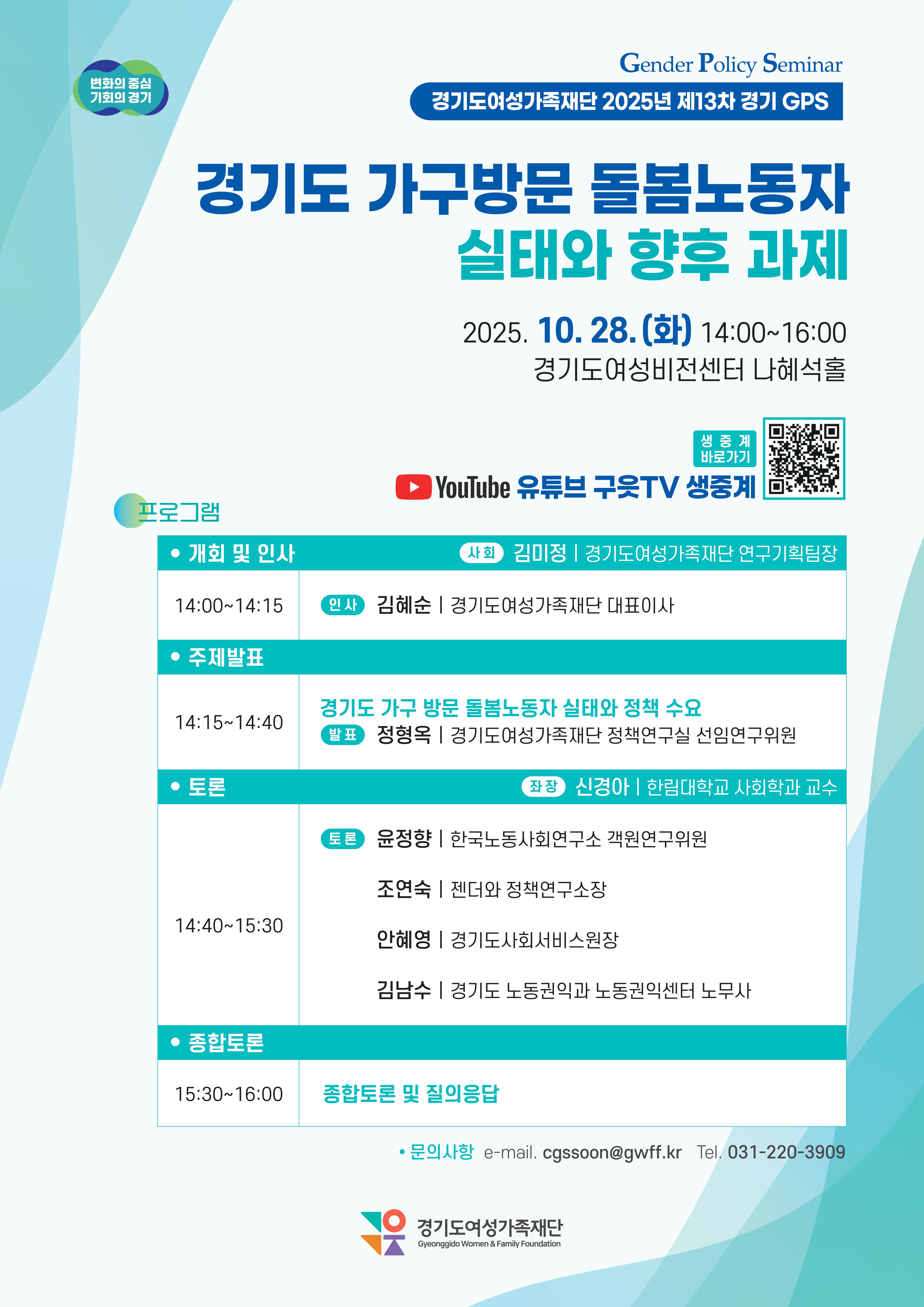 2025년 제13차 경기GPS 「경기도 가구방문 돌봄노동자 실태와 향후 과제」 안내