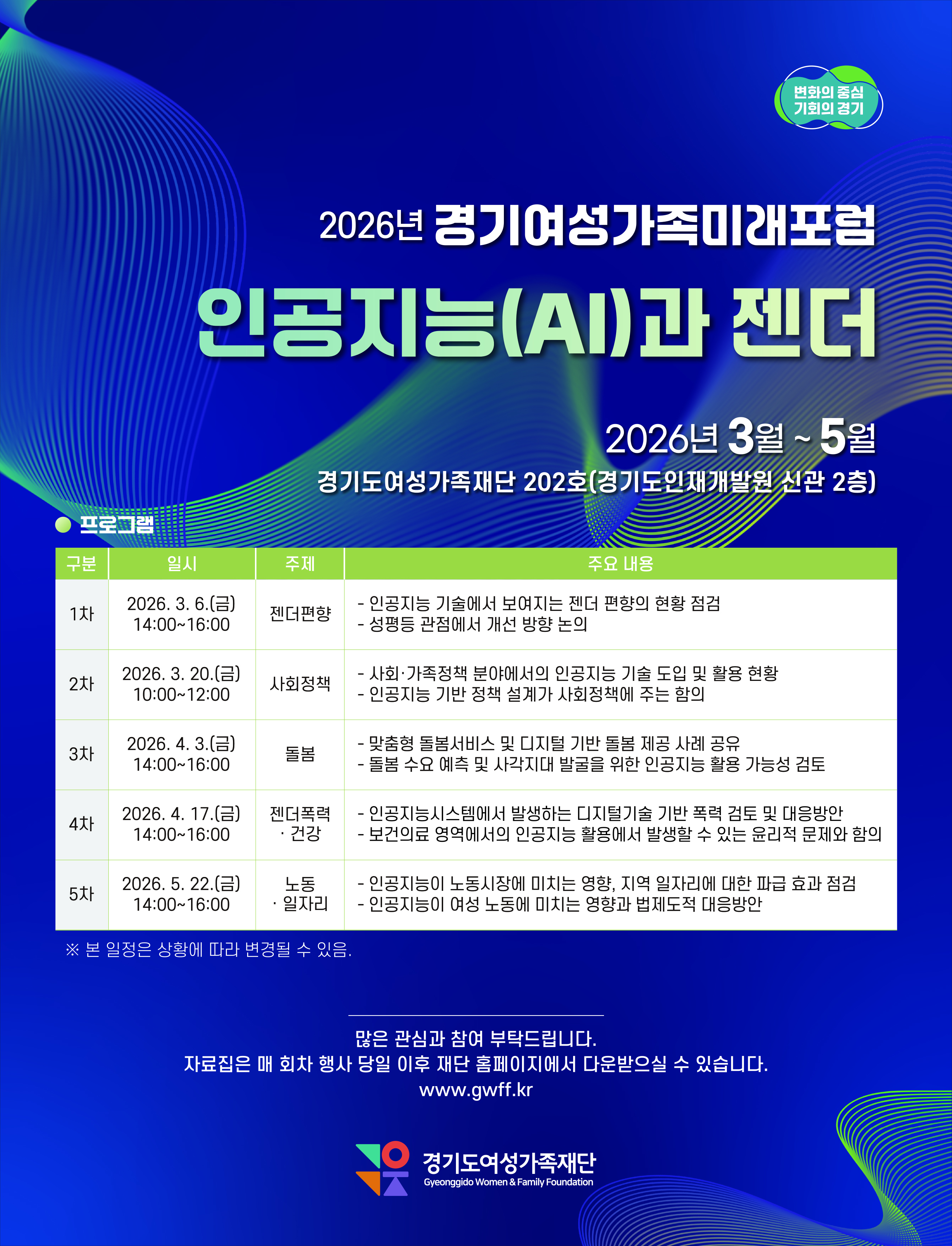 ○ 행 사 명 : 2026년 경기여성가족미래포럼 인공지능(AI)과 젠더