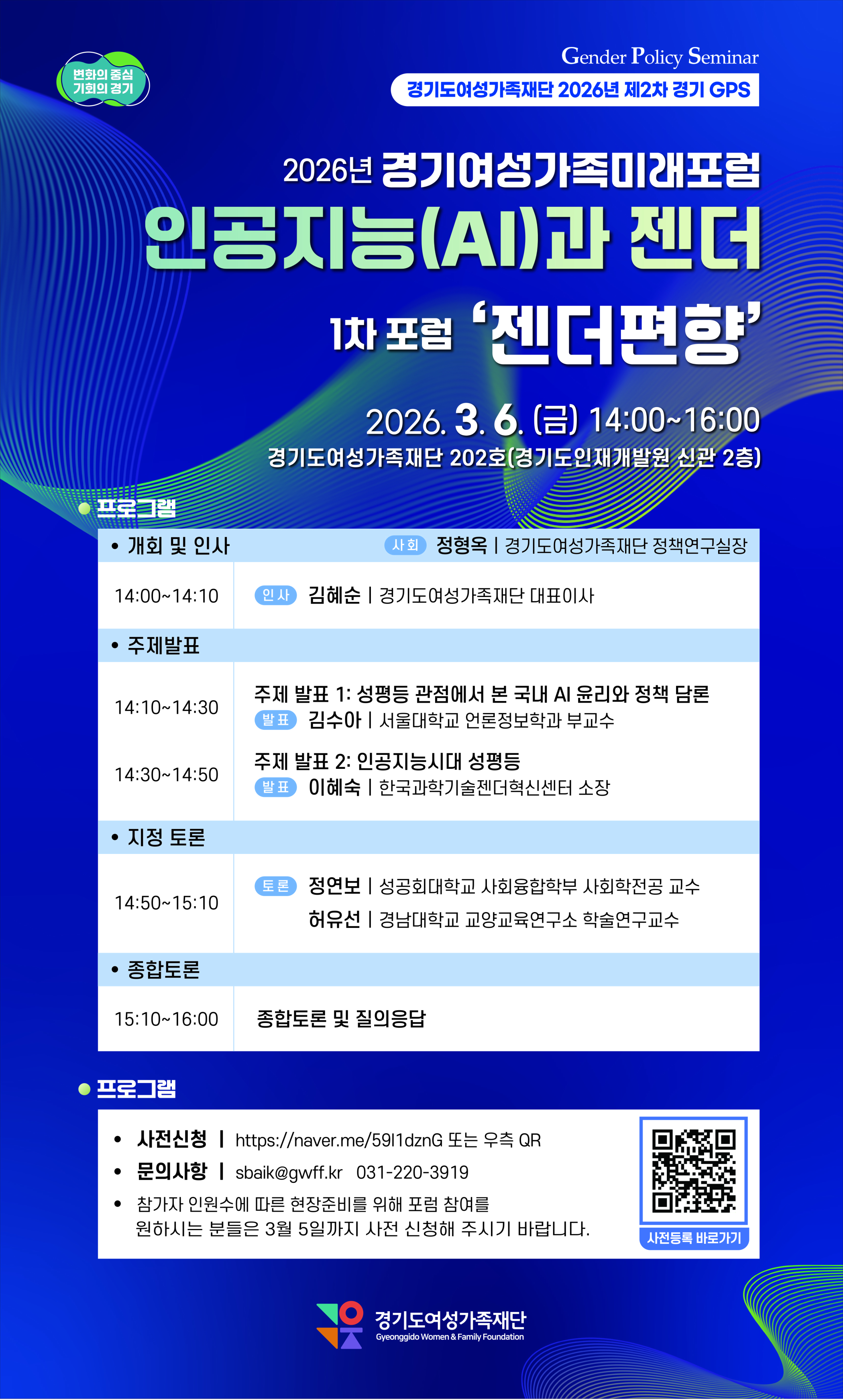 <2026년 경기여성가족미래포럼 인공지능(AI)과 젠더> 1차 포럼 '젠더편향' 개최 안내