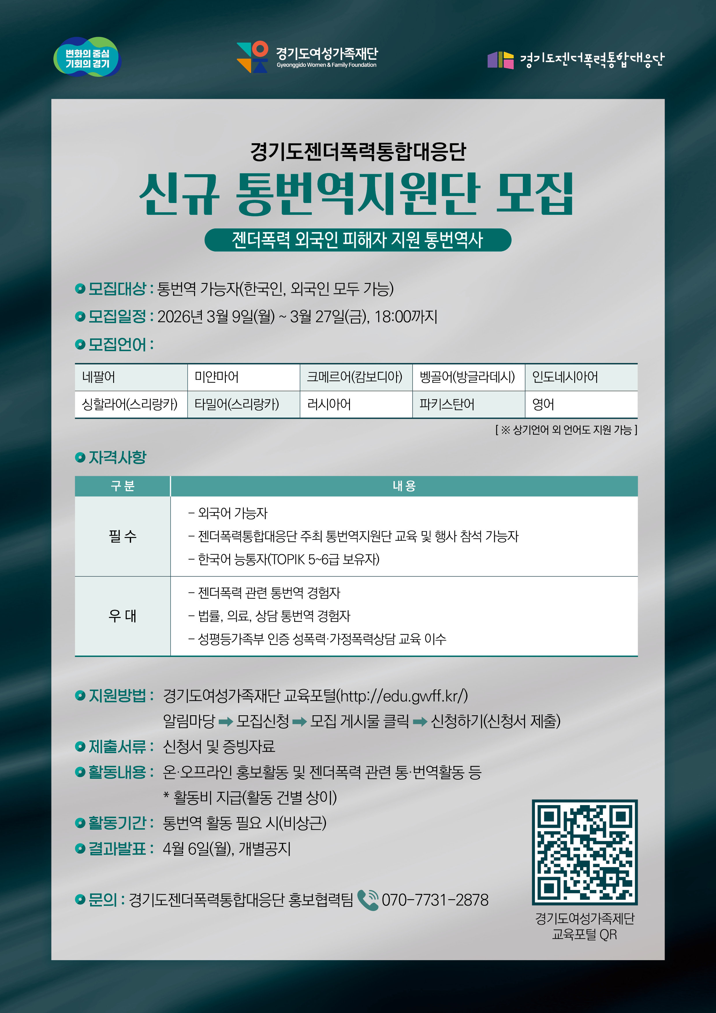 2026년 경기도젠더폭력통합대응단 통번역지원단 모집