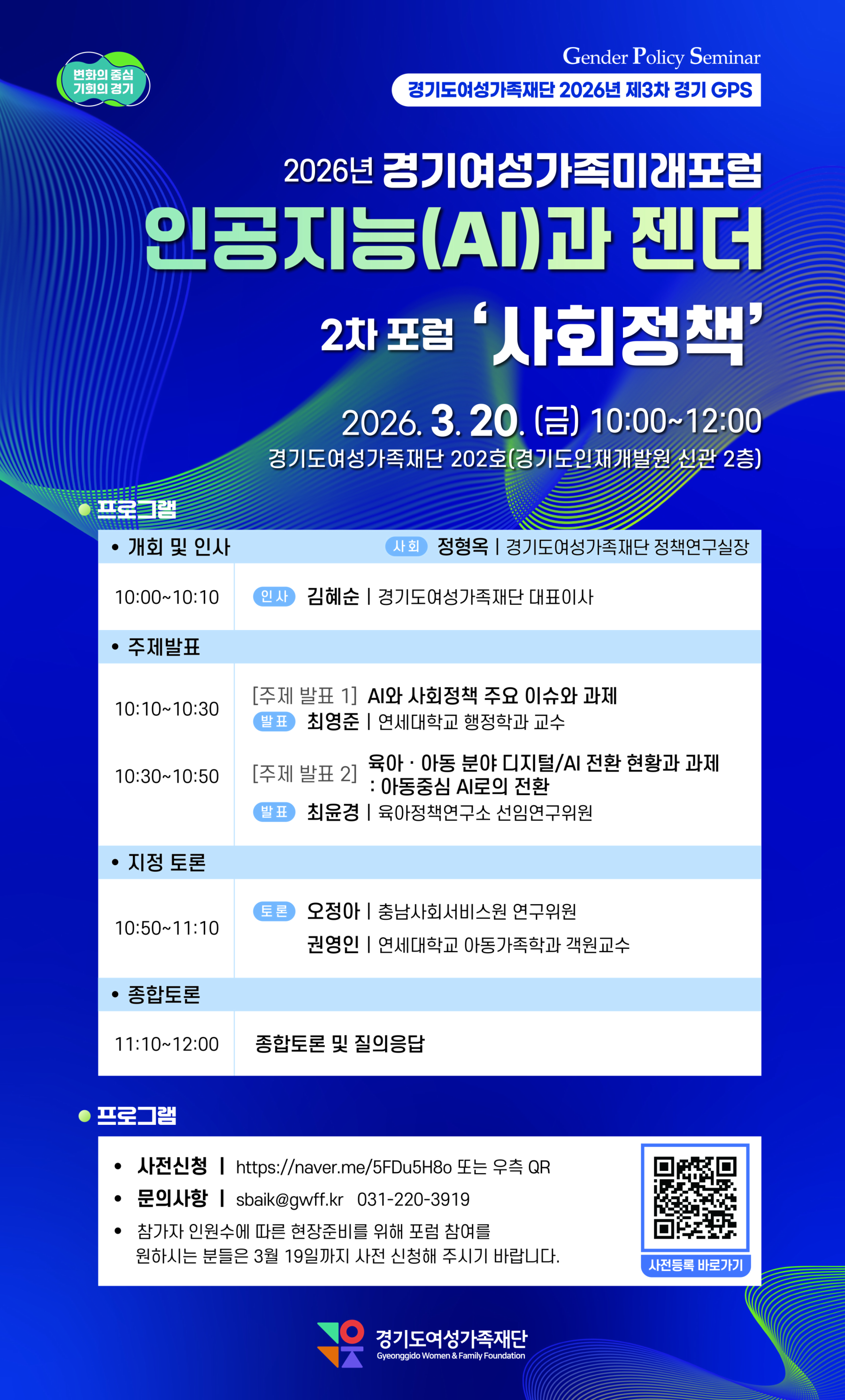 경기여성가족미래포럼 2차 포럼이 3월 20일 개최됩니다.