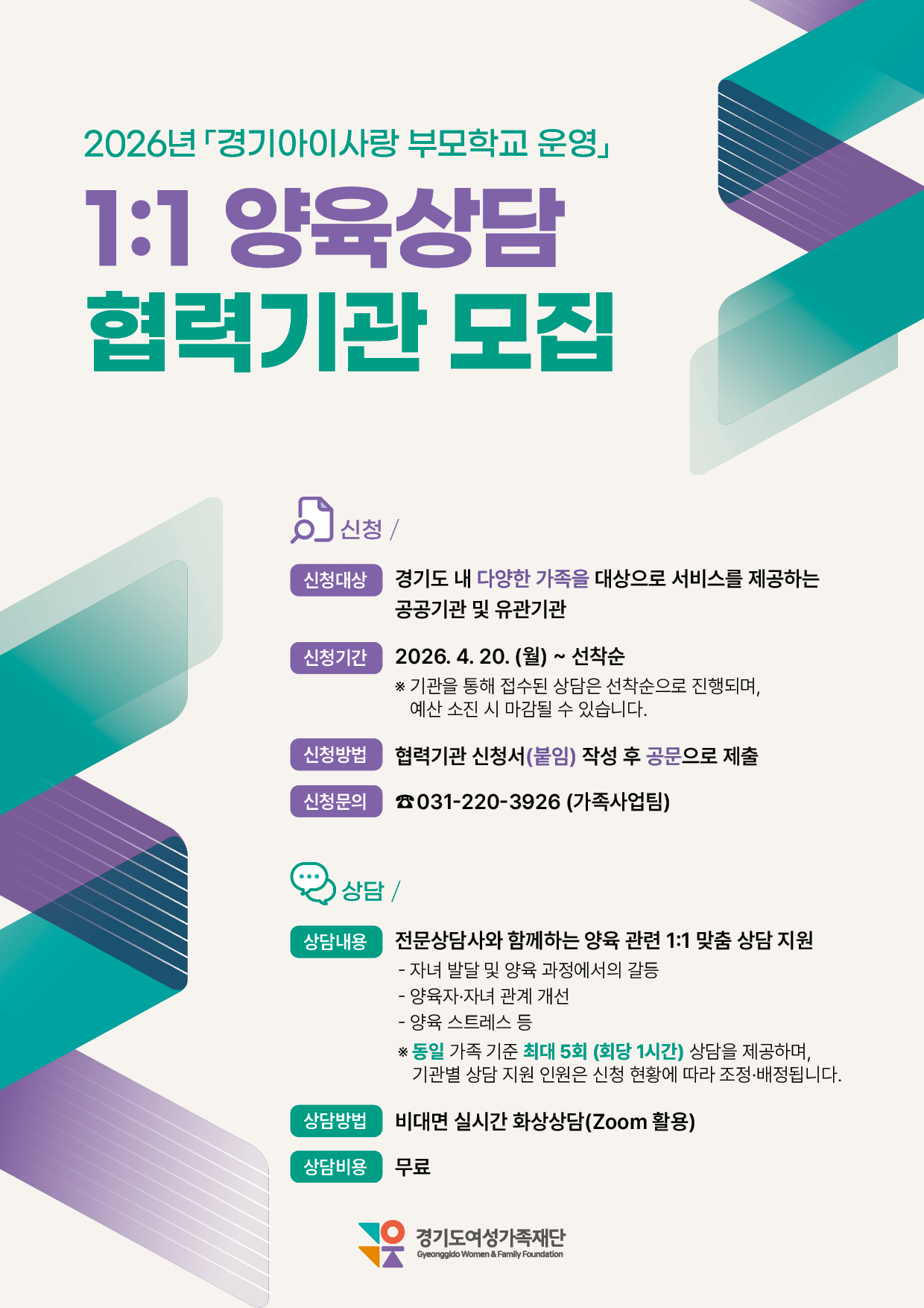 2026년 「경기아이사랑 부모학교 운영」 1:1 양육상담 협력기관 모집
