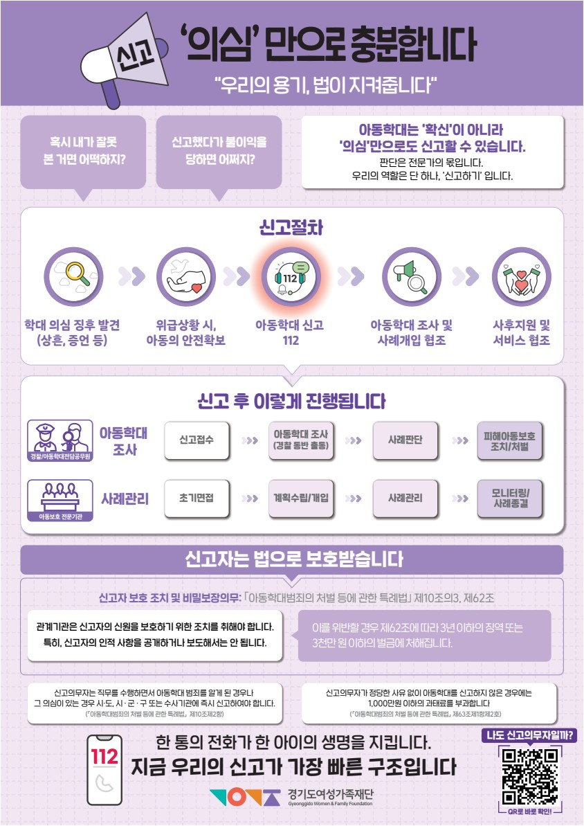 아동학대 의심 시, 112로 신고하세요.