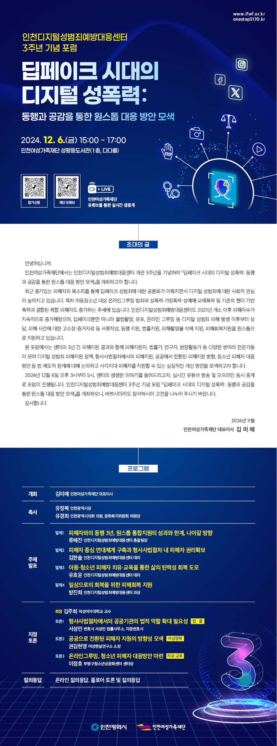 [인천여성가족재단] 인천디지털성범죄예방대응센터 3주년 기념 포럼 안내