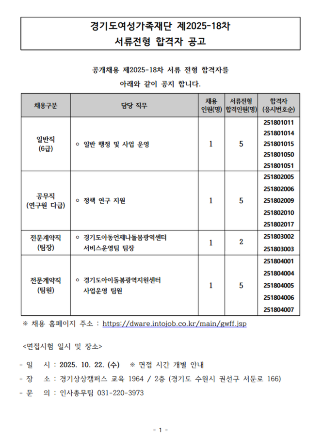 [채용공고 제2025-18차] 직원 채용 서류 전형 합격자 공고