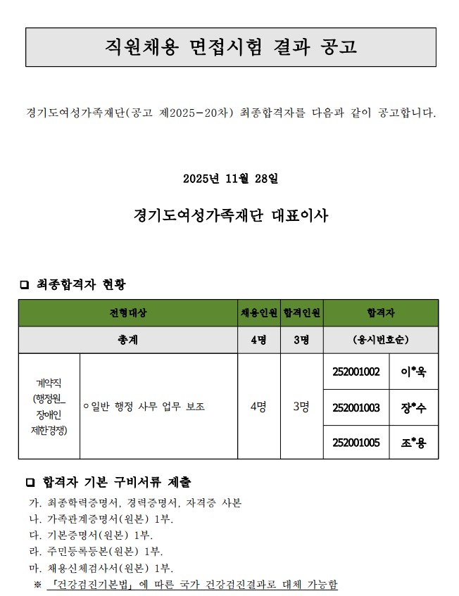 [채용공고 제2025-20차] 최종 합격자 공고 (장애인 제한 경쟁)