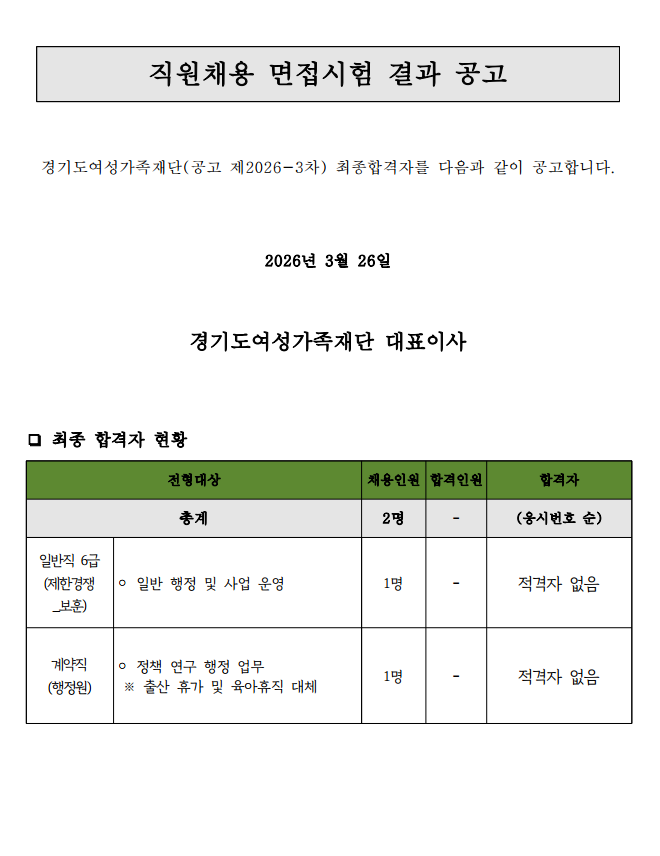 [채용공고 제2026-3차] 직원 채용 최종 합격자 공고